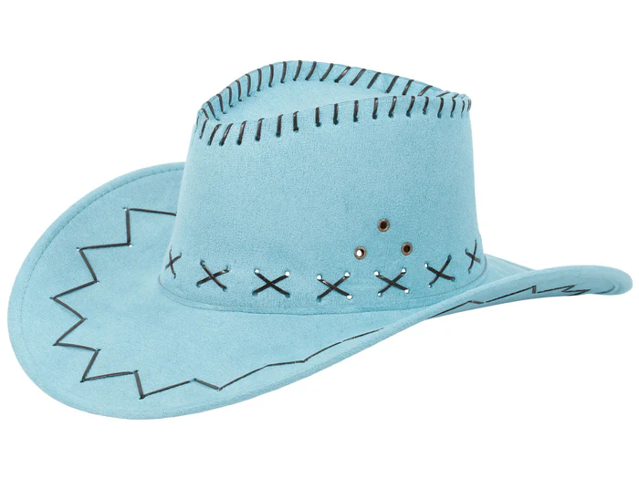 Cowboyhut hellblau, Zick Zack Muster, 100 % Polyester, zirka 39 x 36 cm, Farbabweichungen möglich!