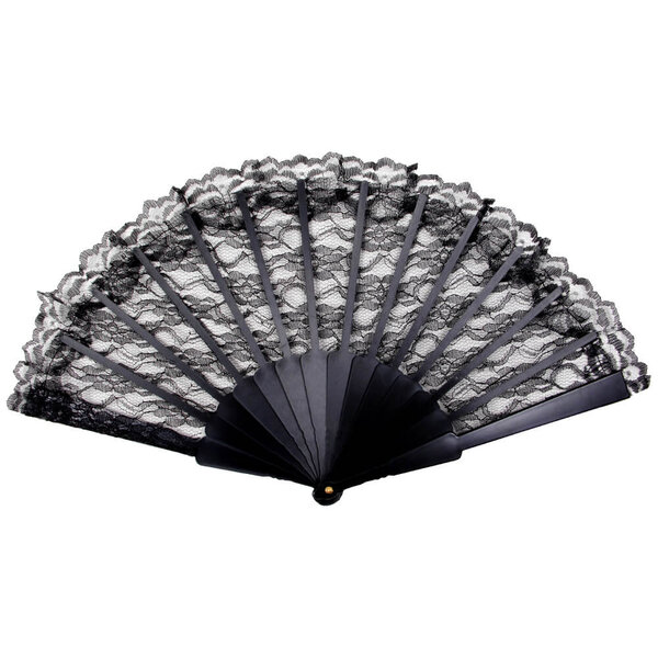 Fächer, Faltfächer, Windfächer, schwarz, transparent, Länge zirka 23 cm, Spannweite zirka 43 cm, Stoff, Kunststoff, nur trocken säubern!
